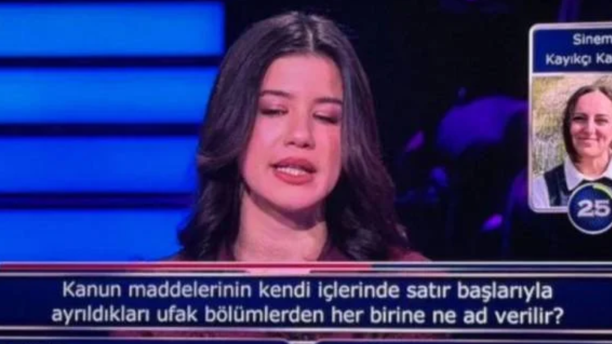 Yarışmacıya “Kanun maddelerinin kendi içlerinde satır başlarıyla ayrıldıkları ufak bölümlerden her birine ne ad verilir?” sorusu yöneltilirken, sorunun cevaplanması için telefon joker hakkı kullanıldı. Soruda kararsız kalan yarışmacı hukuk hocasını aradıktan sonra doğru yanıtı verebildi.
