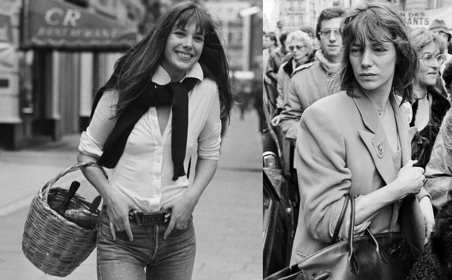 Jane Birkin 1983’te bir uçak yolculuğu sırasında Hermes’in CEO’suna istediği gibi çanta bulamadığı için sepet kullandığını (solda) söyleyince ‘Birkin Bag’ (sağda) doğdu