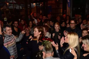 Levent Ece Bar’da bir gece. Ön planda Levent Yüksel, mikrofonda Sezen Aksu