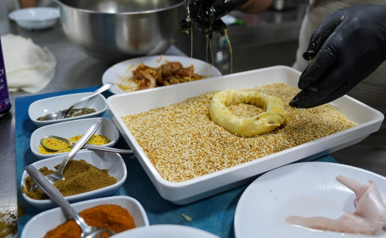 Yeni bir ürün olmasına rağmen günde 60-70 porsiyon sattıklarını söyleyen Kılıçdere tarifi de paylaştı: “Soya soslu kılçıksız levrek baharatla harmanlanıyor ve yufkanın içine sarılıyor. Daha sonra susama bulanarak yağda kızartılıyor. Gevrek ama içinde levrek var. Müşterilerimize bu şekilde tarif ediyoruz.”