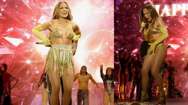 “Up All Night: Live in 2025” turnesi kapsamında Polonya’nın başkenti Varşova’da sahne alan Jennifer Lopez, sahne kostümünü değiştirirken seyirciler tarafından sürpriz şekilde tekrar sahneye çağrıldı. Hayranlarının “İyi ki doğdun” şarkısını söylemesiyle doğum günü kutlaması başladı. O sırada altın rengi payetli üçgen bikini üstü ve püsküllü eteğiyle sahneye çıkan Lopez’in eteği bir anda yere düştü.
