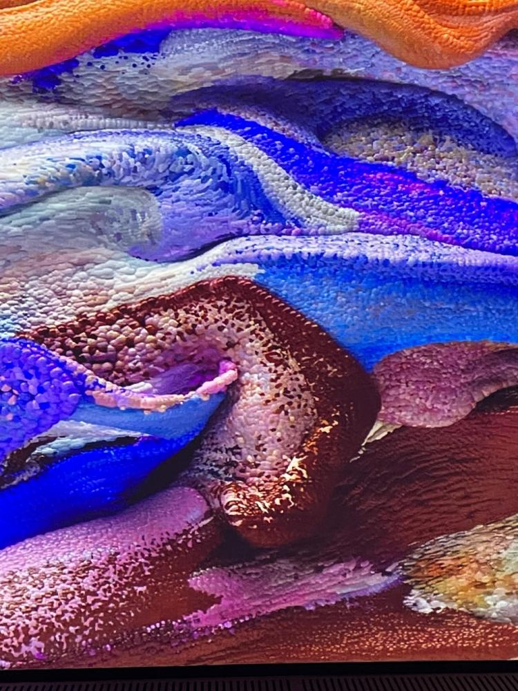 Echoes of the Earth: Living Archives Anadol’un İngiltere’deki ilk büyük kurumsal solo sergisi olarak değerlendiriliyor. 16 farklı yağmur ormanından derlenmiş bitki, hayvan ve mantar görüntülerinden ilham alan yapay zeka üretimi görüntüler başta olmak üzere bir görsel cümbüş. Akıp giden, dönüşen resimlere kapılıp mekanda uzun süre geçirmemek elde değil.