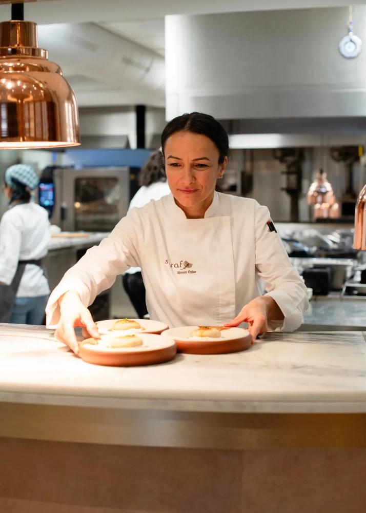 Sinem Özler Türk mutfağını özenli bir ortamda sunan Saraf Vadi'nin şefi. Tüm fotoğraflar: Gözde Durusoy / New York Times New York Times yazarı Anya von Bremzen, Kuzguncuk’taki ‘Hatice Anne Ev Yemekleri‘nde sarımsaklı yoğurt ve cızır cızır kızarmış tereyağı sosuyla sunulan “nohut büyüklüğündeki” el açması mantıyı yerken, bir yandan da rehberinden İstanbul’un zengin gastronomi dünyasına kadınların nasıl ağılığını koyduğunu öğreniyor ve bu restoranlar hakkında yazmaya karar veriyor.