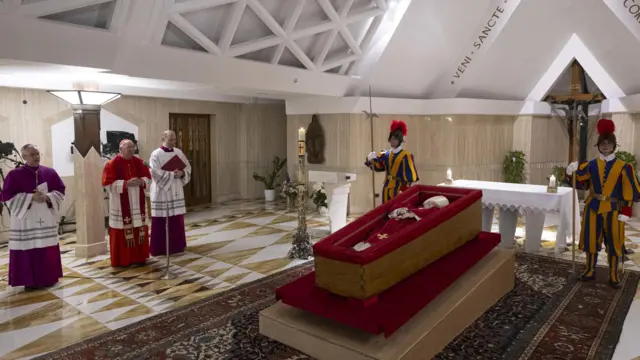 Vatikan, pazartesi sabahı hayatını kaybeden Papa Franciscus’un naaşının 12 yıllık görevi boyunca ikamet ettiği Santa Marta Konukevi’nin şapelinde açık bir tabut içinde görüldüğü görüntüleri Salı günü paylaştı.