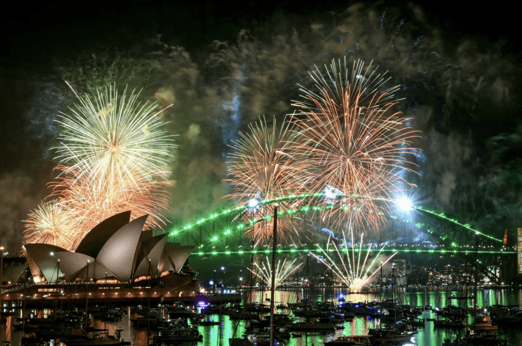 Güvenlik sıkıydı ve geleneksel gece yarısı havai fişeklerinden önce ikonik Liman Köprüsü barış ve birlik sembolü olarak beyaz renkte aydınlatılırken, Avustralya şehri kurbanlar için bir anlık saygı duruşunda durdu.
