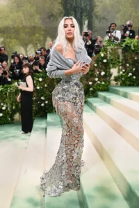 Kim Kardashian bu yıl da galanın davetlisiydi ve bir kez daha aşırı sıkı bir korseli giysi tercih etmişti.