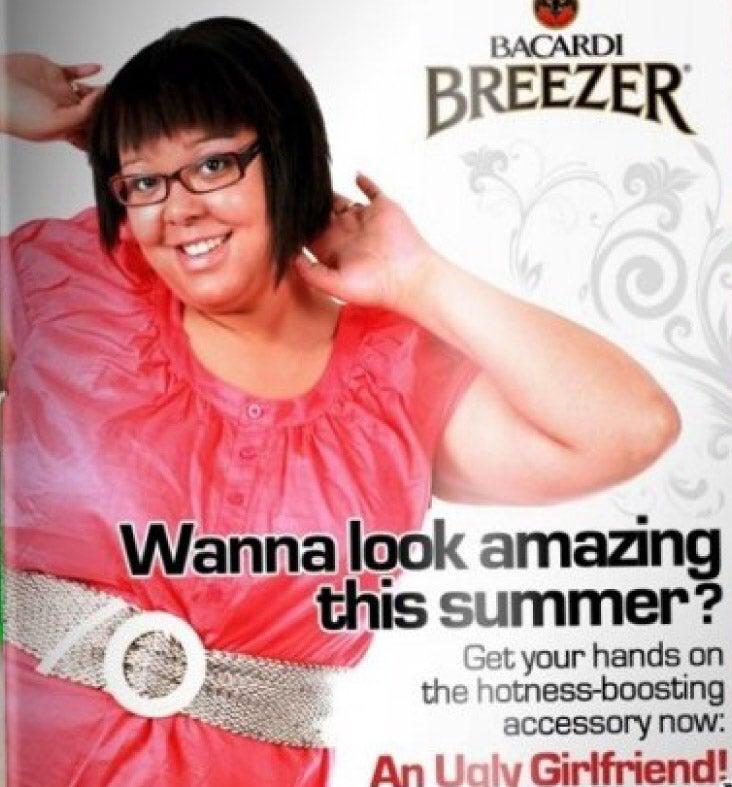 İçki markası Bacardi’nin 2009’da kadınları “tavlamak” için yaptığı reklam kampanyası elinde patladı. Kadınların bir kısmını kafadan “çirkin” ilan ederken hedef kitlesine de “Ancak yanında çirkin bir kadın olursa güzel görünürsün” diyordu.