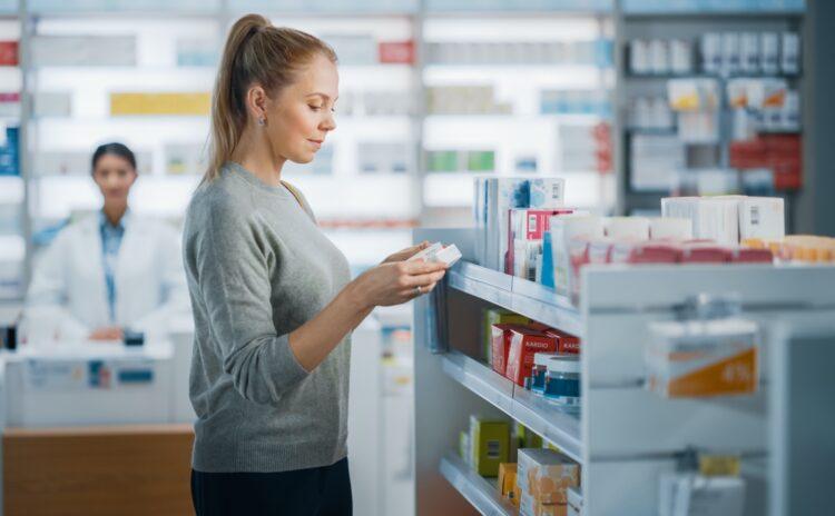 Pharmacy Drugstore: Beautiful Caucasian Young Woman Chooses to Buy Medicine, Drugs, Vitamins, Searches Shelves for the Best Choice. Modern Pharma Store Shelves with Health Care, Beauty Products Ağustos ayında 20-30 dolar fiyat aralığında satışa sunulan evde menopoz testi tıpkı gebelik testi gibi idrar örneğiyle yapılıyor. Ancak gebelik testi tek bir idrar örneğiyle yapılırken menopoz testinde 10 gün boyunca idrar örneği toplamak gerekiyor.