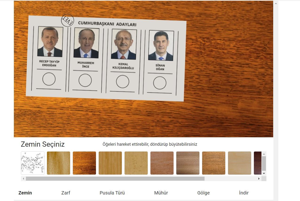 Bunların yanında bir de eğer sırada, nüfus kağıdı varken ya da zarfla beraber çekilmesi istenen ayrıntılı fotoğraflar için ayrı bir internet sitesi oluşturuldu. Bu siteye girdiğinizde de kendi isteklerinin doğrultusunda bir oy pusulası oluşturabiliyorsunuz. Sitede, sıra renginden pusulanın masada durduğu yere kadar birçok farklı şekilde kendi oy pusulanızı oluşturabiliyorsunuz. Ancak kullanıcılar gölgelendirmeleri iyi olmadığı için görüntünün sahte olduğunun belli olmasından şikayetçi.