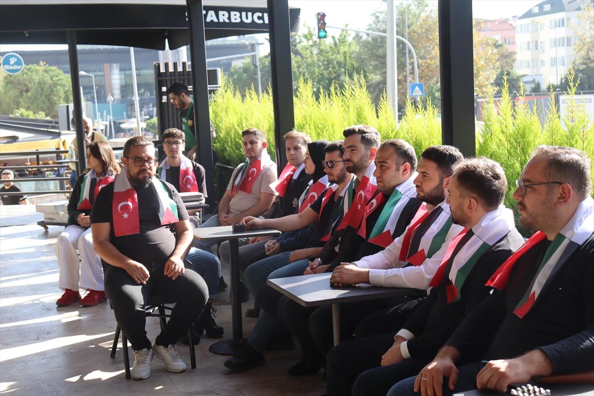 İnan ülke genelindeki Starbucks şubelerinde Türk ve Filistin bayraklı atkılarla 30 dakika ‘yer kapatma eylemi’ yapacaklarını söyledi. Eylem kapsamında AK Partililer bir Starbucks’a gidip oturuyor.