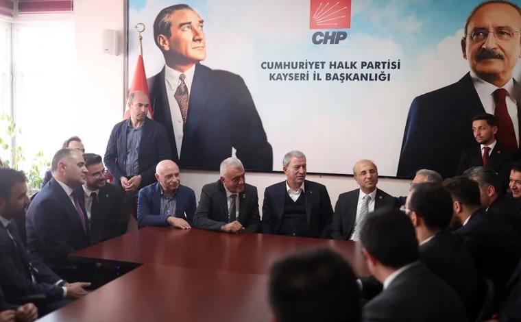 AK Parti’nin Kayseri milletvekili adayı, Milli Savunma Bakanı Hulusi Akar, seçim çalışmaları sırasında hem İYİ Parti İl Başkanlığı’nı hem de CHP Kayseri İl Başkanlığı’nı ziyaret etti. Önce İYİ Parti binasına giden Akar, “Tüm seçim sürecinin birlik, beraberlik, barış ve kardeşlik içinde geçeceğine inancımız tamdır” dedi. Burada Türkiye’ye yönelik tehdit ve risklere karşı birlik olmanın gerektiğini söyleyen Akar, “Sizlerin de bizler gibi düşündüğünüze inanıyoruz” diye konuştu.