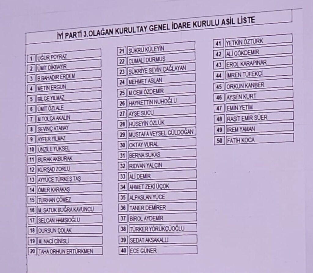 Son olarak, İYİ Parti’de merak edilen 50 kişilik Genel İdare Kurulu listesi ile bitirelim.