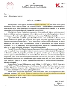 Yazıya göre, Milli Eğitim Bakanlığı 1 Kasımda bir inceleme yapmış ve belediyelerin ‘kreş adı altında özel eğitim kurumu kurduklarını’ saptamıştı. Şehircilik Bakanlığı, belediyelerin ‘özel eğitim kurumu kurma haklarının olmadığını’ hatırlatıyor ve ‘Kreş adı altında’ kurulduğunu iddia ettiği bu eğitim kurumların yenilerinin açılmasını yasaklıyor, mevcutların da bakanlığa devrini istiyordu. Yani hem Milli Eğitim Bakanlığı hem de Şehircilik Bakanlığı belediyeleri ‘izinsiz eğitim kurumu kurmak’la suçluyordu.