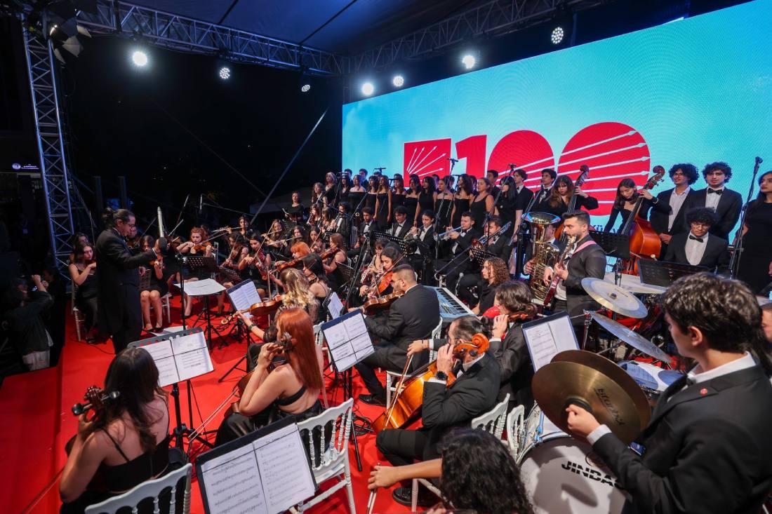 Ankara’daki etkinlikte sırasıyla Gençlik, İzindeyiz ve İzmir Marşların okundu. Sonrasında ise ünlü besteci Bujor Hoinic’in Kılıçdaroğlu’nun Adalet Yürüyüşü’nden esinlenerek bestelediği ve partiye hediye edilen 100’üncü Yıl Cumhuriyet Marşı ilk kez dinletildi. Marş dinletisinin ardından Kılıçdaroğlu, marşın bestecisi Bujor Hoinic, orkestra şefi Hakan Tepeli ve Koro Şefi Korhan Doğan’a çiçek ve plaket takdim etti. Sunay Akın’ın ‘Aydınlanma Yolunda CHP’ temalı anlatısını gerçekleştirmesinin ardından CHP’nin kuruluş hikayesini anlatan ses ve ışık gösterisi gerçekleştirildi.