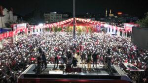 Saraçhane’de 7 gün 7 gece kaldık. 110 bin kişiyle başladık 550 bin kişilik 23 Mart akşamını yaşadık. 26’sında kayyum atamaya cesaret edemediler. ‘İlk birkaç mitigin yaparsınız savsar mitingleriniz’ dediler, ‘kimi bulacaksınız’ dediler. Dedik ki bu dediğiniz şartlarda miting yapılmaz. Miting için hesap kitap yapılır. ‘Ama biz ne Anadolu’ya ne de geceleri İstanbul’a mitinge gelmeyeceğiz, eyleme geleceğiz’ dedik. O gün bugün hiç ara vermeden 39 ilçemizi tek tek dolaştık. İlçe mitinglerine Şişli ile başladık geçen hafta Ataşehir’de noktaladık. 3 hafta var buradan geri sarıyoruz. 3. Bölge’den başlıyor, 19 Mart’a kadar geri sayıyoruz dedik. Çarşamba akşamları meydanları boş bırakmadan, mücadeleyi yarım bırakmadan, meydanlarda adaletin sesini haykırarak devam ediyoruz ve darbenin yıl dönümünde tarihi bir eylemde Saraçhane’de milyonlar olacağız. Sizin azminizle bir devir kapanıyor, bir devir açılıyor. Bakan evlatlarının devri gidiyor, vatan evlatlarının devri geliyor.