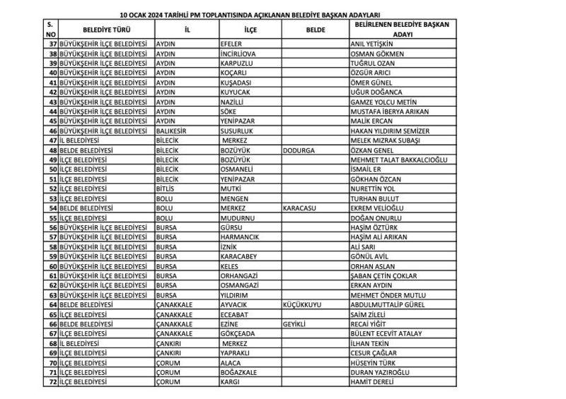 10 Ocak’taki PM sonrası açıklanan adayların tam listesi: