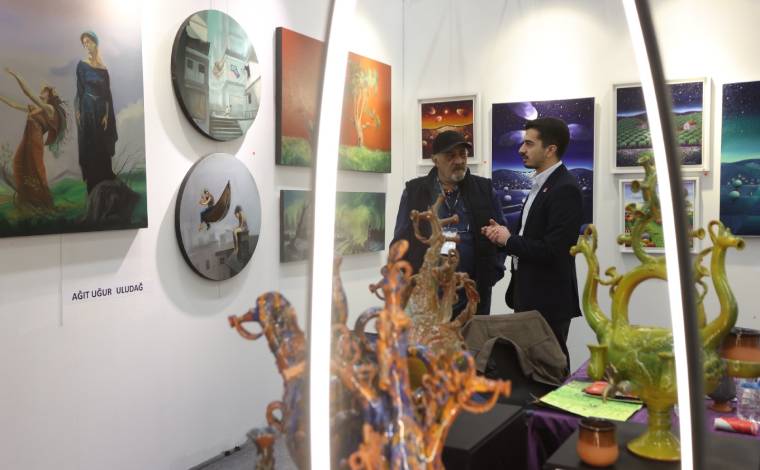 Hüseyin Can Güner fuardaki tüm sergi alanlarını gezerek sanatçılar ve sanatseverlerle sohbet etti ve yeni dönem için projelerini anlattı.