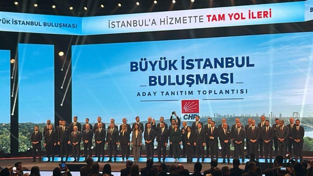 Tartışmalar sürerken bugün İstanbul Haliç Kongre Merkezi’nde CHP’nin “Büyük İstanbul Buluşması Aday Tanıtım Toplantısı” yapıldı. İBB Başkanı Ekrem İmamoğlu’nun konuştuğu tanıtım toplantısında CHP’nin İstanbul’un 39 ilçesindeki adayların isimleri tek tek okundu.