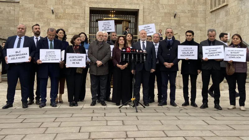 DEM Parti Milletvekili Grubu Meclis’te Suriye’deki çatışmalara ilişkin açıklama yaptı. Tüm milletvekillerinin katıldığı açıklamada Grup Başkanvekilleri Sezai Temelli ve Gülistan Kılıç Koçyiğit konuştu.