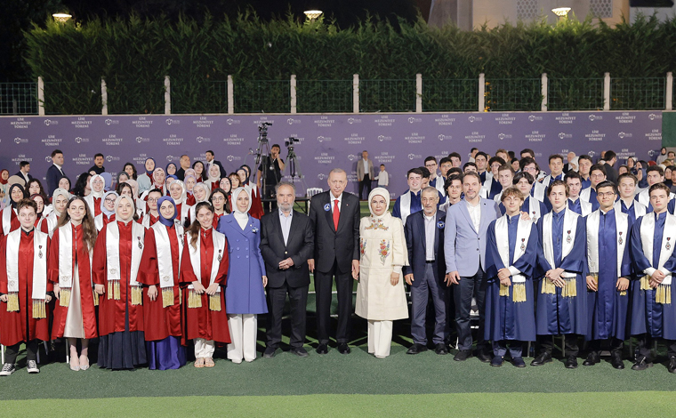 Erdoğan torununa diplomasını verdi, törende Erdoğan’ın dünürü ve Berat Albayrak’ın babası Sadık Albayrak ile ilahiyat profesörü Hayrettin Karaman da vardı.