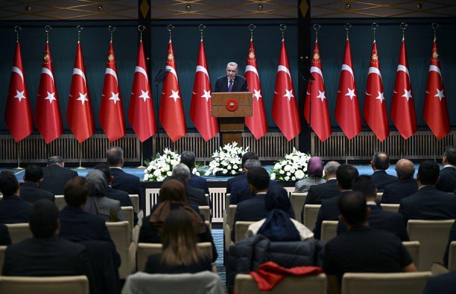 Toprakların yüzde 66’sının, nüfusun yüzde 71’inin deprem açısından riskli alanlarda yer aldığını vurgulayan Erdoğan, Türkiye’de son bir asırda 6 ve üzeri büyüklükte 231 depremin meydana geldiğini, bu afetlerde 130 binden fazla canın toprağa verildiğini belirtti. Erdoğan, 6 Şubat depremlerinde 50 binden fazla insanın yıkıntıların altında kalarak hayatını kaybettiğini anımsatarak, deprem şehitlerine rahmet diledi.