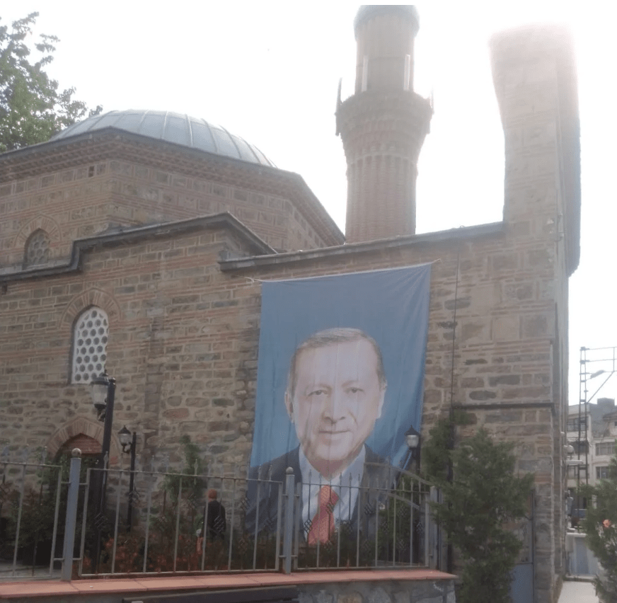 Bursa’da camiye asılan Erdoğan pankartı tepki çekmişti
