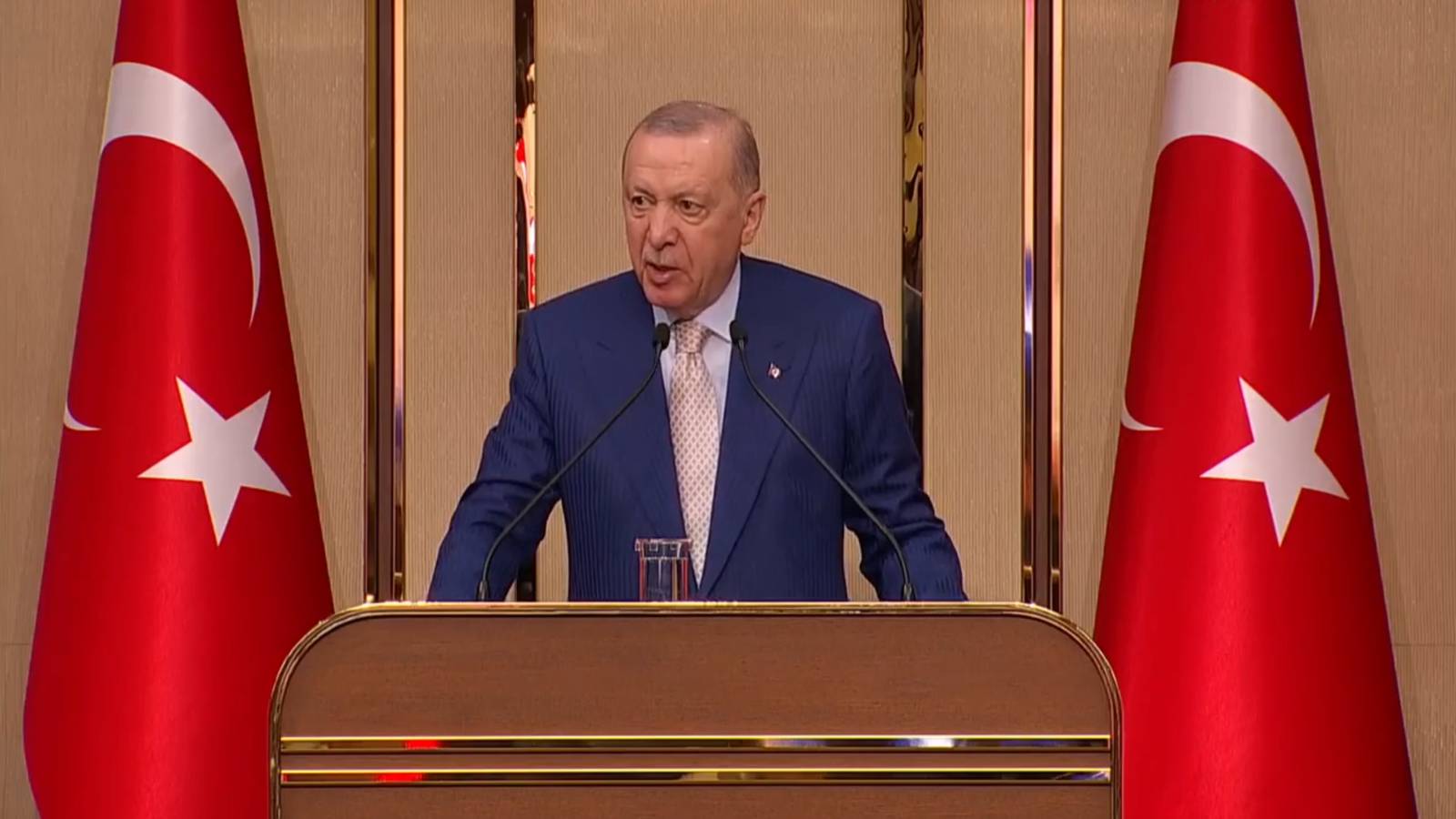 Cumhurbaşkanı ve AKP Genel Başkanı Recep Tayyip Erdoğan, Beştepe Millet Sergi Salonu’nda “Uluslararası Demokratlar Birliği Heyetini Kabul Programı”nda konuştu..
