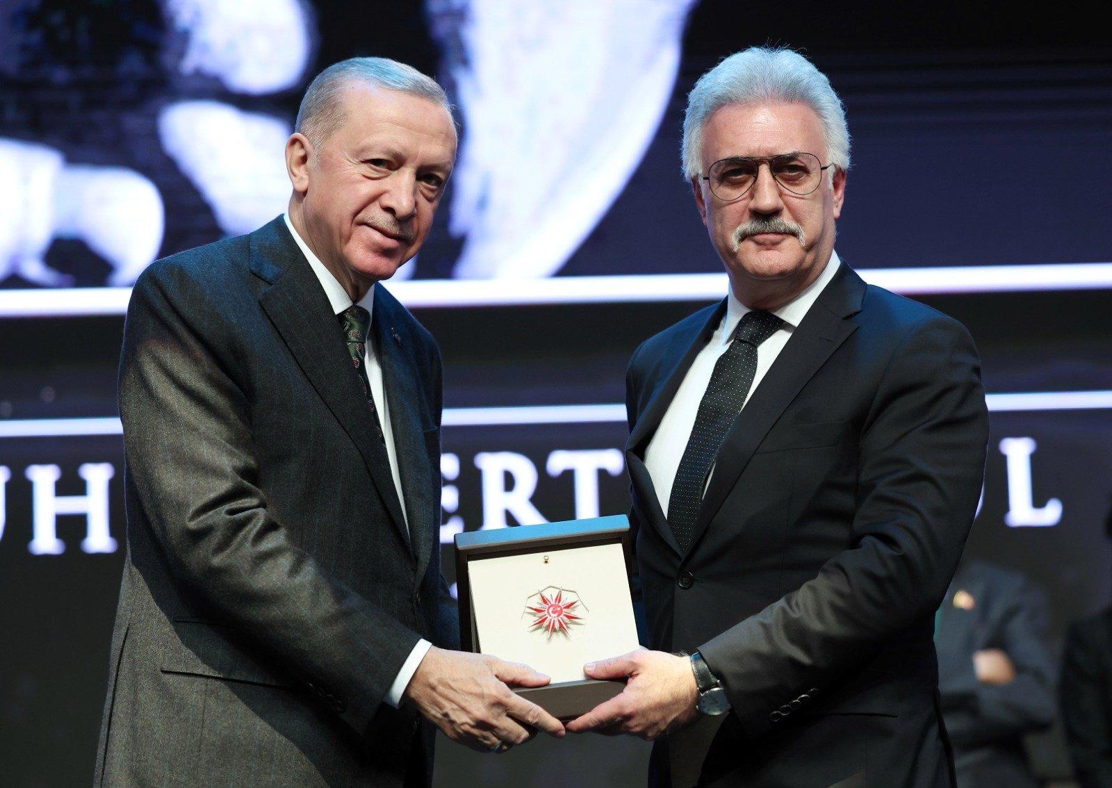 Cumhurbaşkanı Erdoğan ödül töreninde konuştu, "Kültür, sanat ve akademi dünyasını tek tipleştiren, çoraklaştıran, baskı ve tahakküm altında tutan ideolojik kabileler gerçeği ile bir an önce yüzleşmemiz gerektiğine inanıyorum" dedi.