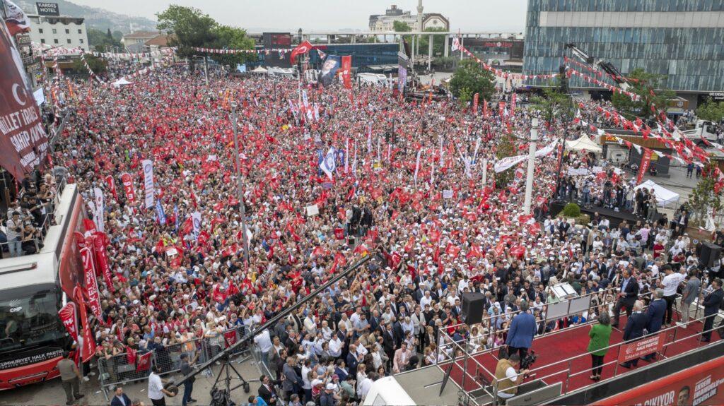 Toplanmayalım diye 9 günü tatil ilan edenler Maltepe’de milyonları görünce işin ciddiyetini anladı. O gün bugün, Samsundan başlayarak, tüm Türkiye’den Bursa’mıza selam getirdik. Bursa’da Kent Meydanı’nda miting olur mu dediler. Ben hep sizlere güvendim. Biz mitinge mi geldik buraya? Eyleme geldik. İktidar partisi yıllarca Bursa’nın sahibi gibi davrandı. Bursa AK Partinin kalesi dediler. 47 yıldır sağ partilerin. Bursa artık ne Tayyip Erdoğan’ın ne de AKP’nin kalesidir. Bursa artık milletin kalesidir. Herkes şunu bilsin ki artık kaleler yok. Bizim de kalelerimiz millete feda olsun.