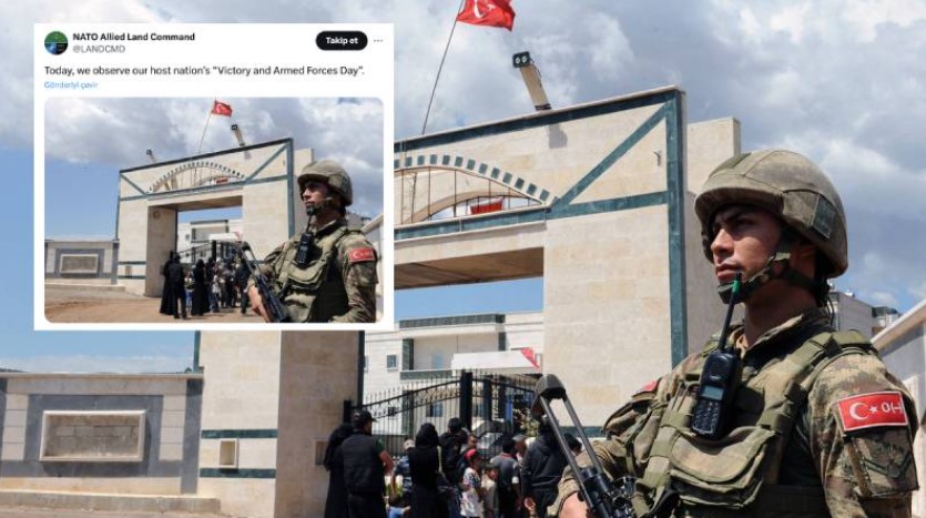 NATO Müttefik Kara Komutanlığı (LANDCOM), X hesabından 30 Ağustos Zafer Bayramı’nı kutlamak için bir mesaj paylaştı. Mesajda, Türkiye’nin Afrin’de kurduğu hastanenin önünde nöbet bekleyen Türk askeri fotoğrafı kullanıldı.