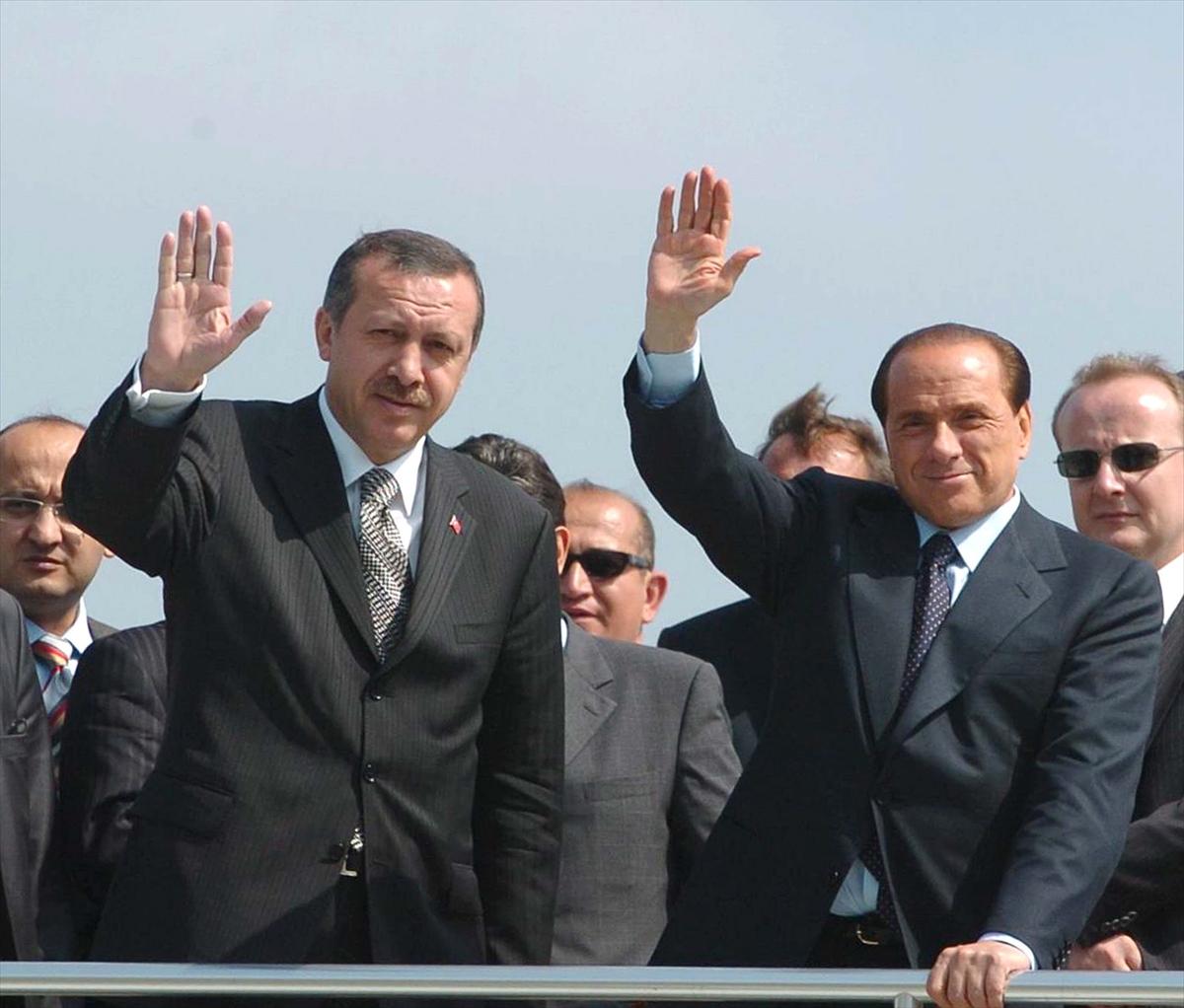 İlk temaslarının 3 Kasım 2002 seçimlerinden sonra gerçekleştiğini anımsatan Erdoğan, Ak Parti iktidara geldiğinde, okuduğu bir şiirden dolayı siyasi yasaklı olduğunu ve Genel Başkan olduğu Parti’nin seçimden zaferle çıkmasına rağmen, siyaset yapma hakkının hukuksuz bir şekilde engellendiği hatırlattı. Türkiye’de bu durumu normal görmek isteyenlere nazaran dünyada buna ilk itirazı Berlusconi’nin yaptığını söyleyen Erdoğan şu ifadeleri kullandı: “Dostum Berlusconi bizi arayarak, seçim zaferimizi kutladı, siyasi yasağımızın kabul edilemez olduğunu ifade etti ve bizi İtalya Başbakanı sıfatıyla ülkesine davet etti. Sayın Berlusconi ile Roma’da buluştuk, Türkiye-İtalya ilişkilerinden Avrupa Birliği konularına kadar kapsamlı bir görüşme yaptık. Dostum Berlusconi, ‘Şu anda Avrupa’daki en iyi dostunuzun evindesiniz. AB’deki başbakan dostlarımı arayacağım ve avukatlığınızı yapacağım’ dedi. Görevi boyunca da AB’ye üyelik sürecimizde ülkemize her zaman destek verdi.”