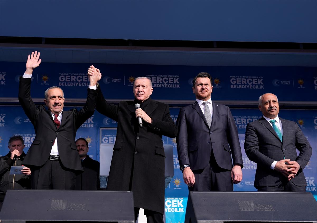 Erdoğan (sol 2) AK Parti’nin Van Beşyol Meydanı’ndaki mitingine katıldı. Erdoğan, Büyükşehir Belediye Başkan adayı Abdulahat Arvas (solda) ile birlikte vatandaşları selamladı.