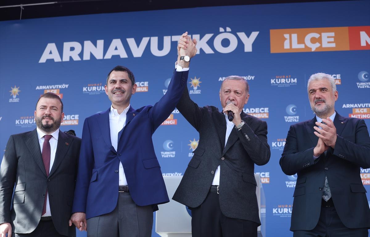 Cumhurbaşkanı Erdoğan seçimden hemen önce İBB adayı Murat Kurum'la Arnavutköy'de miting yaptı. Burada halka seslenen Erdoğan 'Bu sefer yerel yöneticilerimizi belirlerken Cumhurbaşkanınız olarak ben yanınızdayım' dedi.