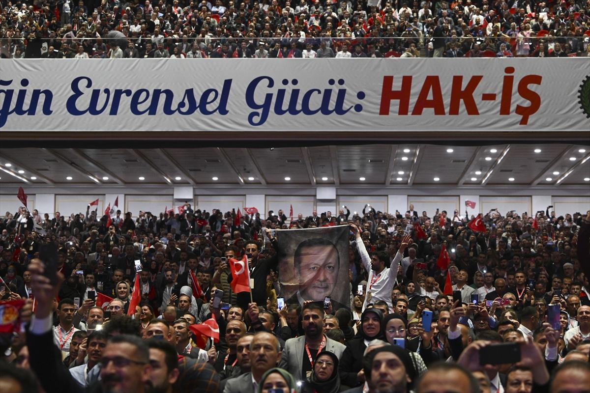 HAK-İŞ Konfederasyonu 15. Olağan Genel Kurulu’na bazı vatandaşlar Cumhurbaşkanı Erdoğan’ın posteri ile katıldı.