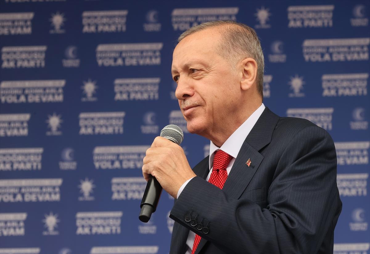 Erdoğan buradaki konuşmasında 15 Temmuz darbe girişimini işaret ederek “Biz 15 Temmuz’da Atatürk Havalimanı’na indiğimizde savaş uçakları üzerimizden geçiyordu. Ama öldürmeyen Allah öldürmez. Dik durduk, dikleşmedik. Yola da böyle devam ettik” dedi. Eski HDP Eş Genel Başkanı Selahattin Demirtaş’a da ağır ifadeler sarf eden Erdoğan, “Kimdir bu Selo? Bu Selo Diyarbakır’da 51 Kürt kardeşimizin ölümüne neden olan haindir. Ve 51 Kürt kardeşimizi öldüren bu Selo, şimdi Kılıçdaroğlu ve diğerleri bunu kurtarmak için can hıraş çalışıyorlar. Başaramayacaksınız. Allah’ın izniyle yine biz geliyoruz” diye konuştu.