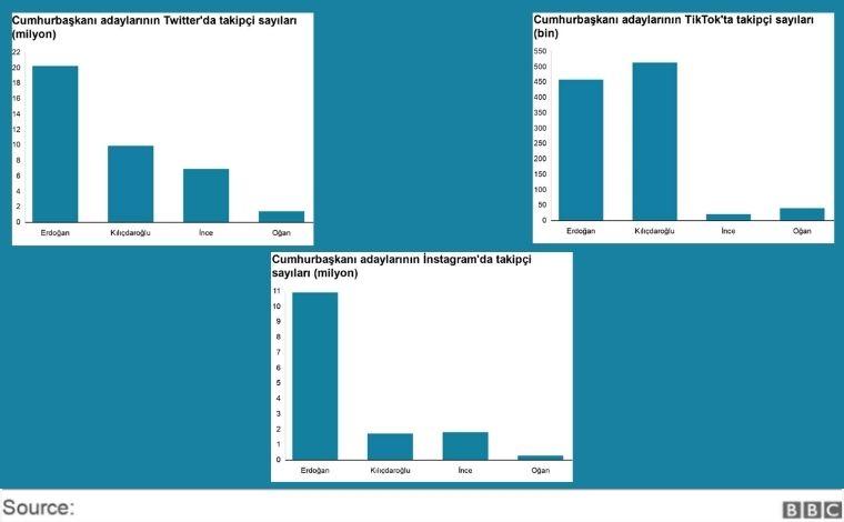 Cumhurbaşkanı adaylarının sosyal medya platformlarındaki takipçi sayıları