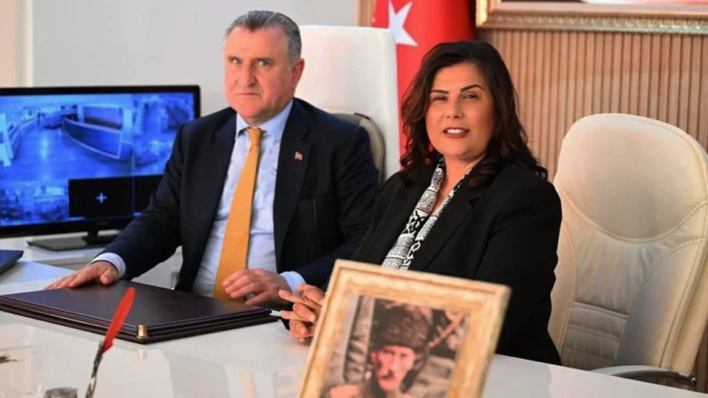 AK Parti’ye geçen Aydın Büyükşehir Başkanı Özlem Çerçioğlu, kendisini ziyaret eden Spor Bakanı Osman Şaşkın Bak’a makam koltuğunu vermek yerine yanına koltuk çektirdi. Osman Şaşkın Bak’ın yüzündeki şaşkınlık dikkat çekti.