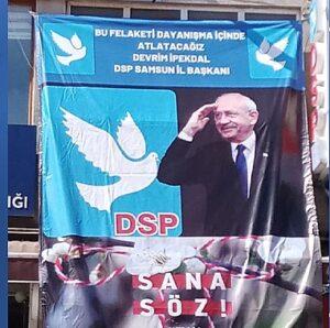 DSP’de Protestolar bitmiyor. Uşak’tan sonra partinin Samsun il binasına da Kılıçdaroğlu’na destek afişi asıldı.