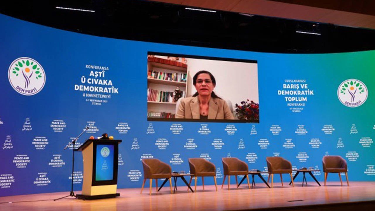 SDG Dış İlişkiler Eşbaşkanı İlham Ahmed İstanbul’da düzenlenen Uluslararası Barış ve Demokratik Toplum Konferansı’na çevrimiçi katıldı.