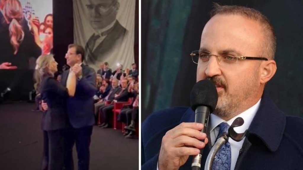 AKP Grup Başkanvekili Bülent Turan, 10 Kasım anmasında Mustafa Kemal Atatürk’ün sevdiği şarkılardan olan Fikrimin İnce Gülü çalarken eşi Dilek İmamoğlu’nu dansa kaldıran Ekrem İmamoğlu’na tepki gösterdi. Turan, İstanbul Büyükşehir Belediye Başkanı Ekrem İmamoğlu’na yönelik, “Bu dansı o değil de, ben yapsaydım, bu dansı o değil de bir AK Partili belediye başkanı yapsaydı, polemik mi istersiniz, manşetler mi istersiniz, günlerce Türkiye bunlara boğulurdu. Ama 10 Kasım’da eşiyle dans eden bir belediye başkanını hiçbir basın kuruluşu eleştirmedi. Buna isyanım var” dedi.
