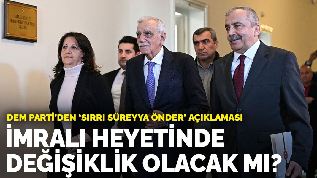 DEM Parti, İmralı heyetinde, yoğun bakımda tedavisi devam eden Sırrı Süreyya Önder’in yerine başka bir ismin yer alacağı yönündeki iddialara yazılı açıklamayla yanıt verdi. Açıklamada, iddialar yalanlanarak “Partimiz bu konuyu gündemine alıp tartışmamıştır, partimizin birinci önceliği yol arkadaşımız Sırrı Süreyya Önder’in sağlığına kavuşmasıdır” denildi. Öte yandan Adalet Bakanı ile yapılacak görüşmeye ise grup başkanvekillerinin katılacağı belirtildi.