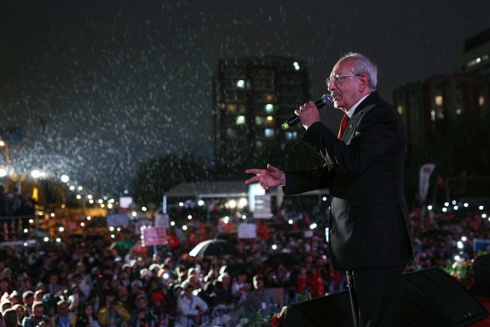 Son olarak sahneye çıkan Cumhurbaşkanı adayı ve CHP Genel Başkanı Kemal Kılıçdaroğlu, yoğun yağışa rağmen alanı dolduran kalabalığa şunları söyledi: