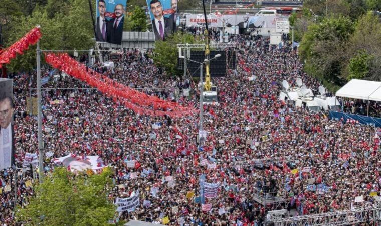 “Kimseye söylemek yok Ankara. Bundan sonra söyleseniz de olur söylemeseniz de; kazanıyoruz. Milletçe kazanıyoruz. Ülkemizi, devletimizi, Cumhuriyetimizi kazanıyoruz. Bu ülkede ben dönemi bitecek biz dönemi başlayacak. Ne demişti Atatürk; dinlenmemek üzere yürümeye karar verenler asla yorulmaz. Yorulmayacağız. Son dakikaya kadar bir fazla kişiyi ikna etmek için çalışacağız. 13. Cumhurbaşkanımız Kemal Kılıçdaroğlu’nu hep birlikte seçeceğiz”