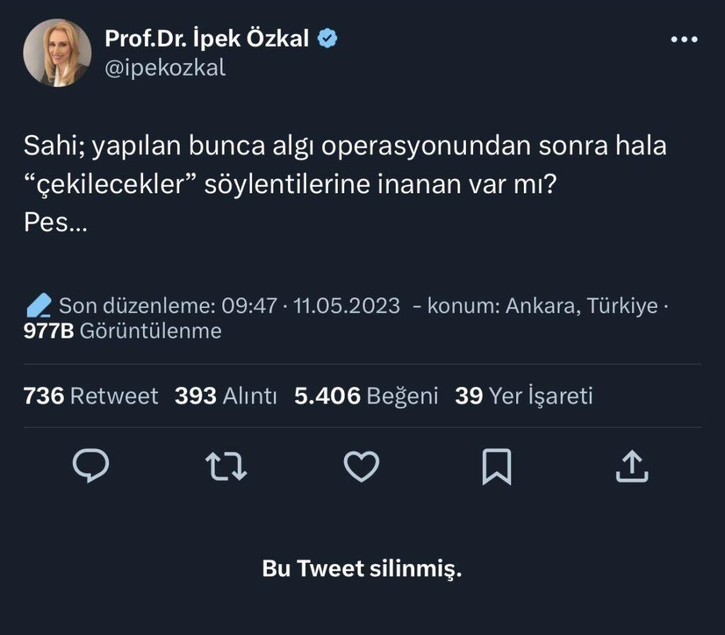 Memleket Partisi Sözcüsü İpek Özkal’ın sildiği mesaj.