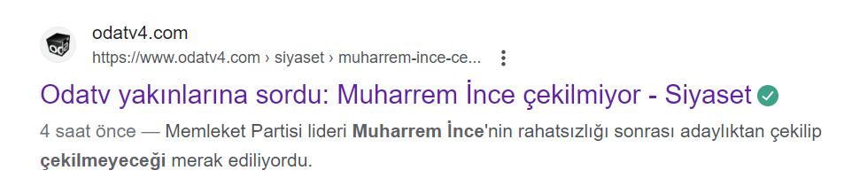 Odatv, İnce’nin kararını açıklamasından önce “Odatv yakınlarına sordu: Muharrem İnce çekilmiyor” başlıklı bir haber yayınlamıştı. Ancak, Odatv de Muharrem İnce’nin kararından sonra haberi yayından kaldırdı.