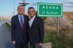 Niğde mitinginin ardından Özgür Özel ve beraberindekiler kara yoluyla Adana’ya, cezaevinden yeni salıverilen Büyükşehir Belediye Başkanı Zeydan Karalar’la bululmaya gitti. Karalar onları Adana il sınırında bekliyordu. Buradaki buluşmanın ardından Adana’da törenin yapılacağı alana geldiler. Adanalılar sabah saatlerinden itibaren bu alanı doldurmaya başlamıştı ve bir miting de burada yapıldı.