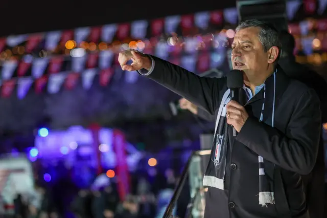 Partisinin İstanbul’da “Millet iradesine sahip çıkıyor” sloganıyla Beşiktaş’ta düzenlediği mitingde konuşan Özel, Erdoğan’a hitaben, “Gel İstanbul Büyükşehir Belediyesi’nde bütün belediye meclis üyelerini istifa ettirerek İBB seçimlerini yenilemeye karar verelim” dedi.
