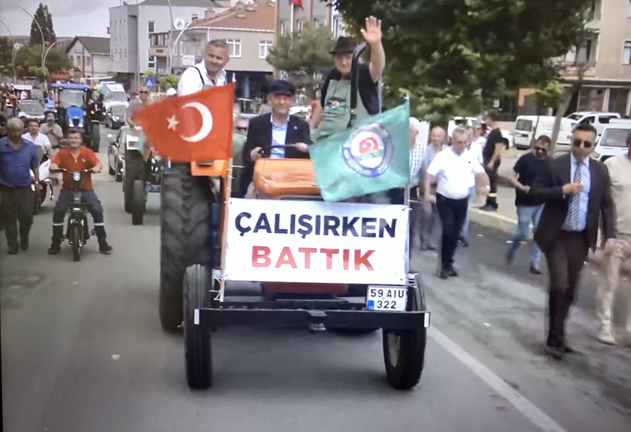 Tekirdağ'da CHP'nin 'Buğday Mitingi'ne katılan çiftçiler, hububat alım fiyatının düşük açıklanmasını traktörlü konvoyla protesto etti. CHP Genel Başkanı Özgür Özel de bu konvoya dahil olarak çiftçilere destek verdi.