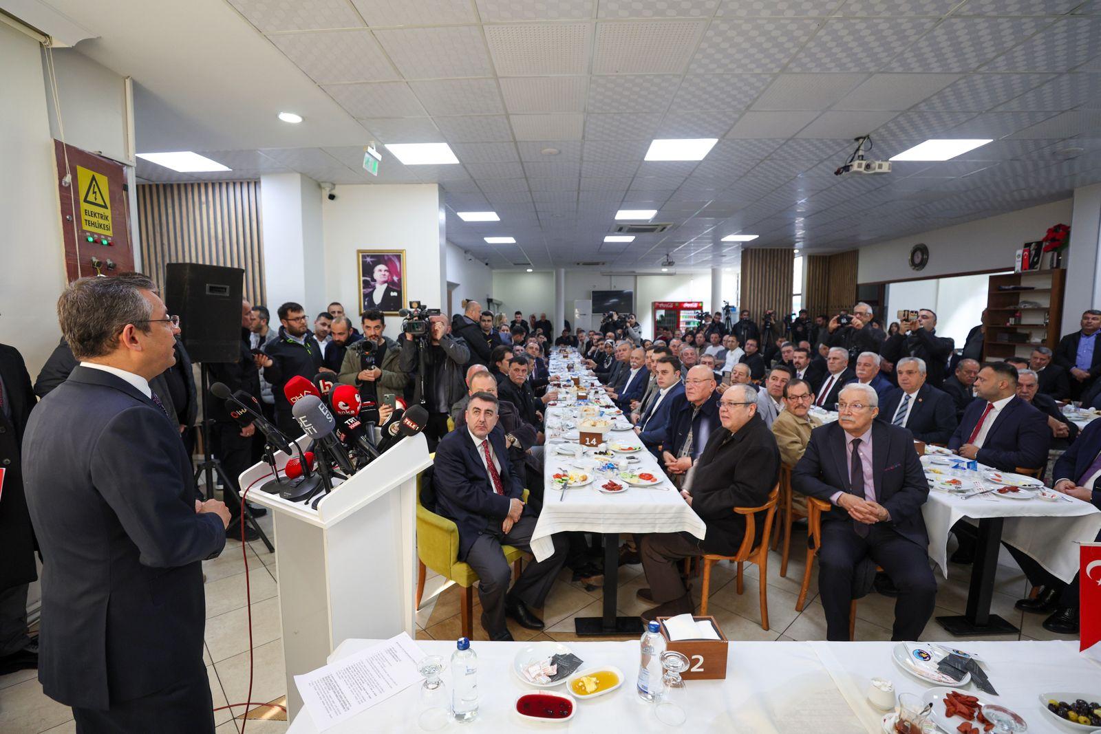Binlerce emeklinin 7 bin 500 lira maaş aldığını söyleyen Özel, esnafın durumunun da kötü olduğunu bunların birbiriyle bağlantılı olduğunu ifade etti. TÜİK’in Cumhurbaşkanı Recep Tayyip Erdoğan’ı üzmemek için emekliyi, çalışanı perişan ettiğini söyleyen Özel, muhtarlara seslendi: “O yüzden, ben muhtarlarıma şunu hatırlatmak isterim. Genel seçimler insanların siyasi tercihlerine göre oy verdikleri seçimlerdir. Biz genel seçimlerde bu ülkenin bütün sorunlarını çözmeye taliptik. Çok da iyi bir noktaya geldik, ama ikinci turda yüzde 1 buçuk gibi bir oy farkı ile iktidara gelemedik. Gelseydik, bambaşka şeyler olacaktı. Ama bugün etkin bir denetim yapma, sorunları dile getirme ve dört yıl boyunca kim sıkıntı çekiyorsa, sıkıntısını dile getirme boynumuzun borcu.”