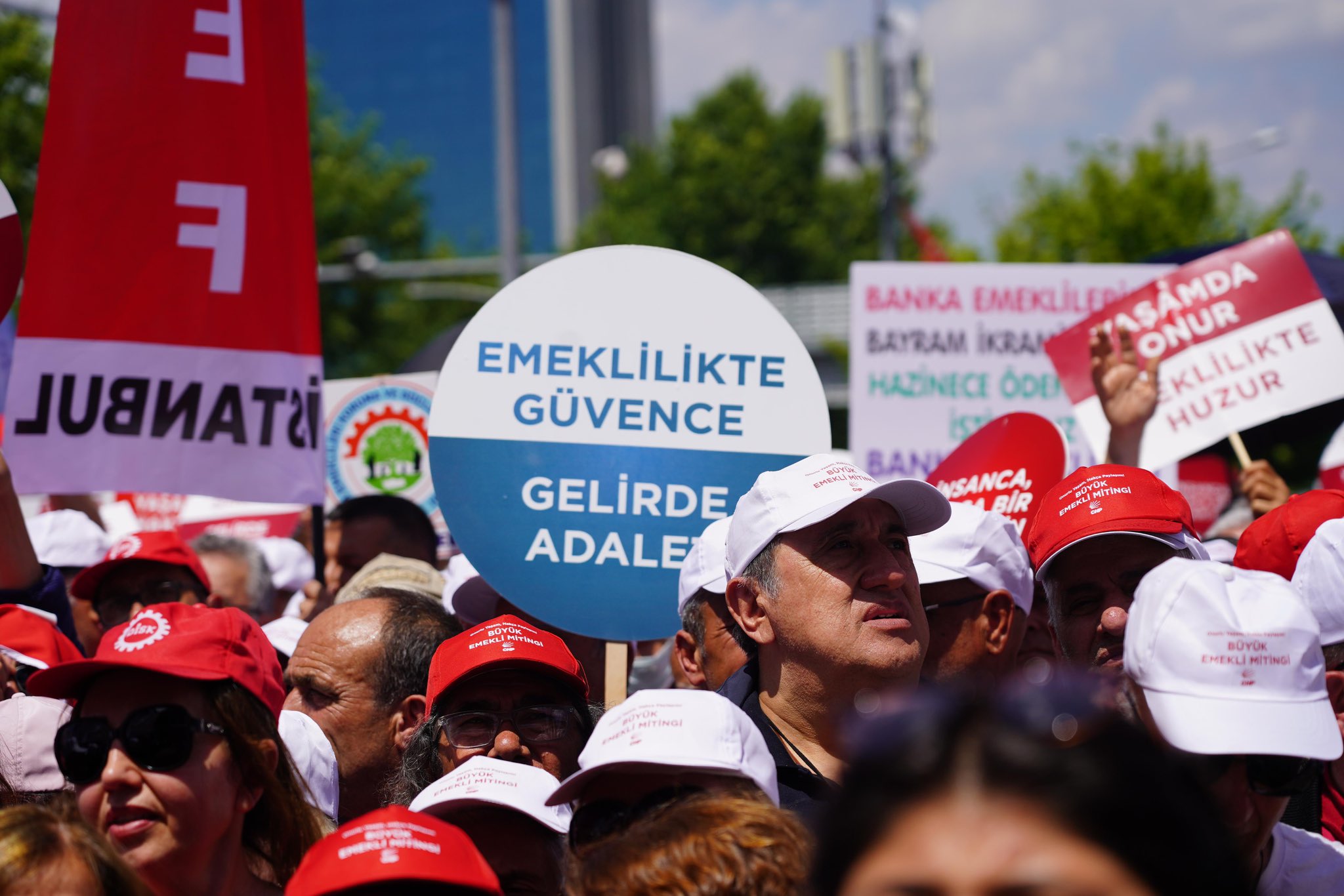 Türkiye’nin dört bir yanından binlerce emekli CHP’nin Ankara’da Tandoğan’da düzenlediği Büyük Emekli Mitingi’nde bir araya geldi. Talepleri için meydanı dolduran emekliler “Mutfakta yangın var, bıçak kemiğe dayandı,” “Krizin bedelini biz ödemeyeceğiz” yazılı pankartlar ve dövizler taşıdı.